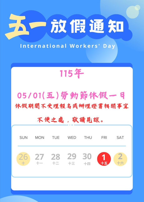 故不受理報名或辦理證書等相關事宜,不便之處,敬請見諒。