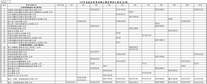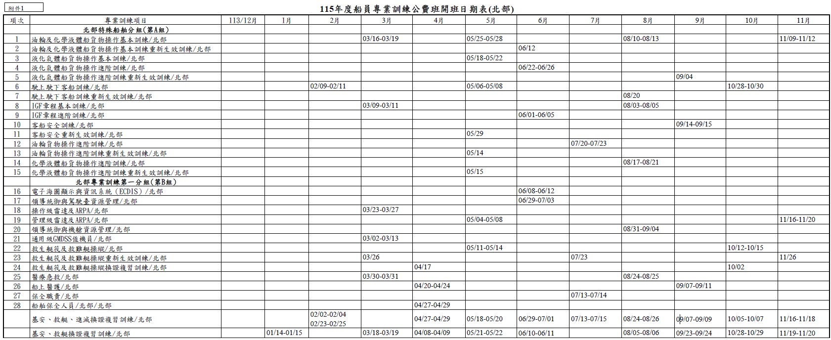 [開班公告] 115年度船員專業訓練公費班開班日期表(北部)